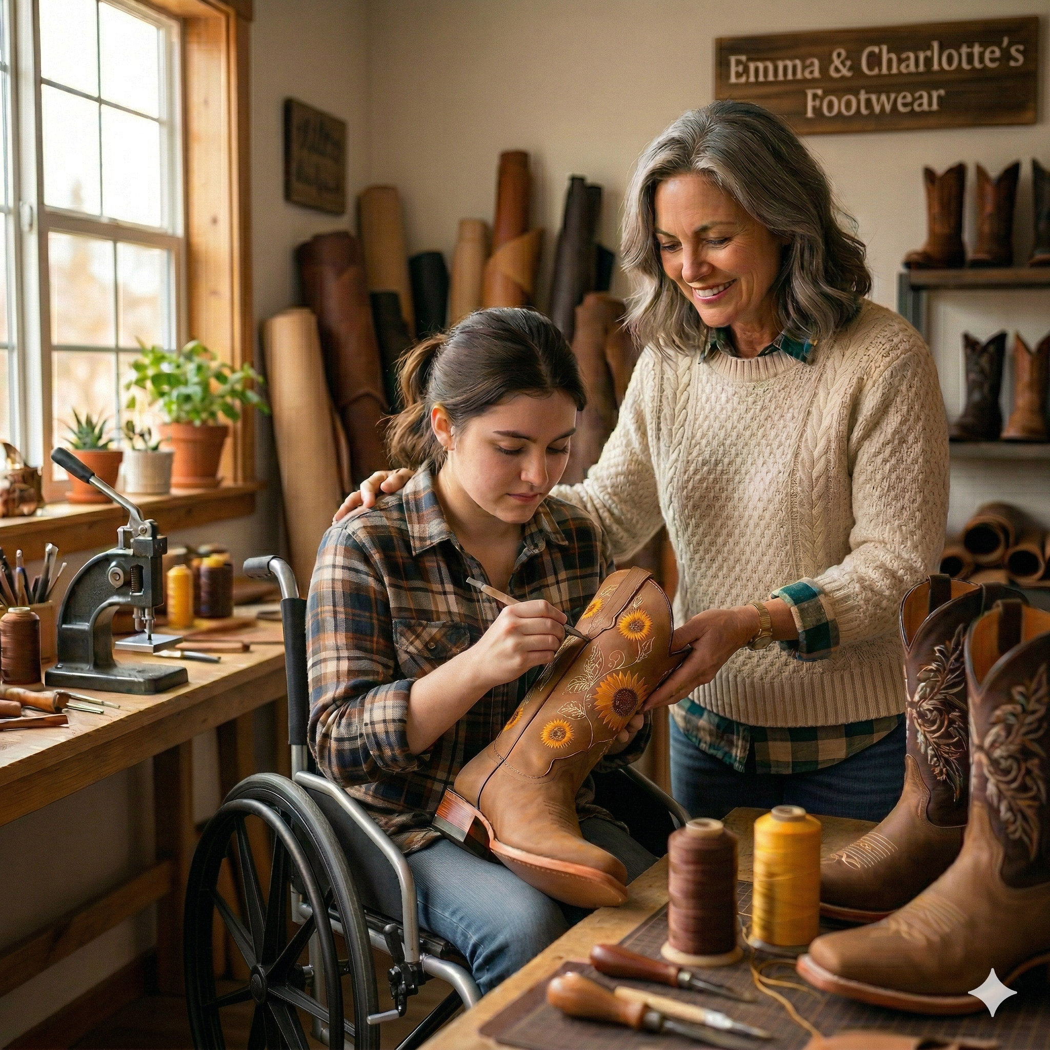 Two years ago, mother-daughter duo Emma and Charlotte turned a lifelong dream into reality. Navigating life in a wheelchair never stopped Emma’s passion for authentic Western style. Together, they craft boots that prove no obstacle is too big when you have grit and heart.